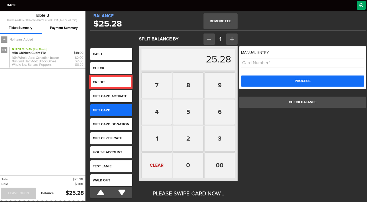 Tap Credit. This invokes the PIN Pad, and the card can be dipped or swiped.