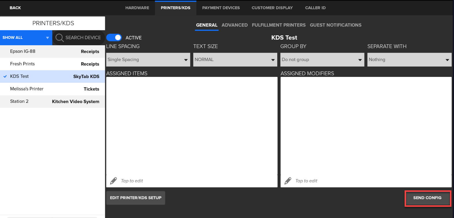 Description: Learn how to resend your KDS Configuration from the SkyTab POS.