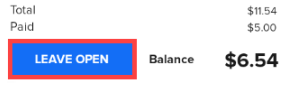 - On the "Payment Summary" screen, select Leave Open to keep the ticket open until another payment is made to settle the balance.