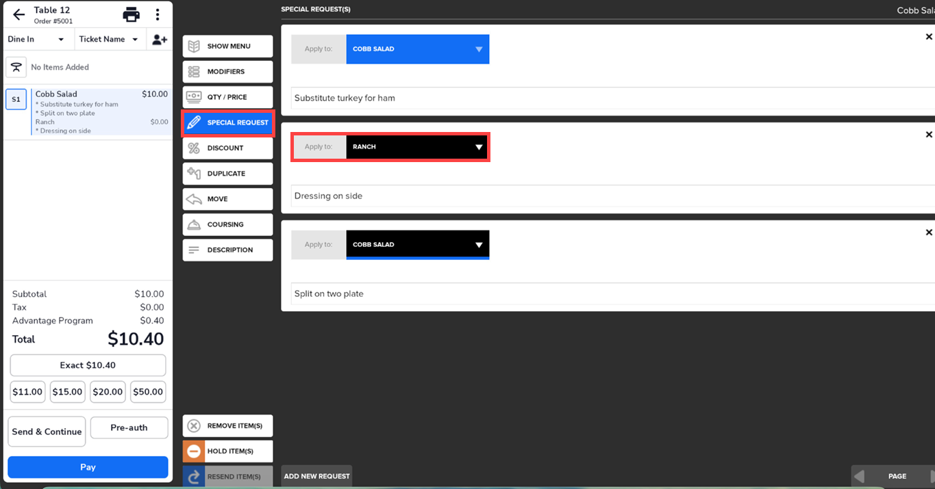 Add Special Requests to an Item