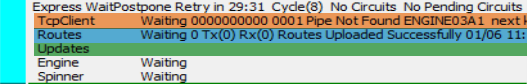 Errors that occur while connecting will be displayed in plain text on the TcpClient row.