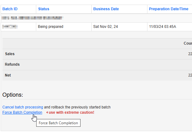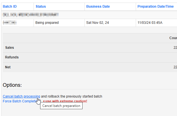 - If the merchant is end-to-end and agrees, this batch can be closed manually in LTM. If they are gateway only, they can close the batch manually themselves if they so desire.