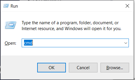 - Type"cmd" into the Run/Search box.