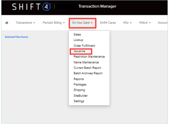 - Log in to Transaction Manager with a username that has access to It's Your Card (IYC).
