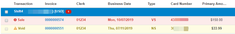 - Once the transactions for the day needed are pulled, you must validate that they do not show any issues or errors and that the grand totals match the Interface reporting for the selected date. When reviewing transactions, keep an eye out for the following notifications: