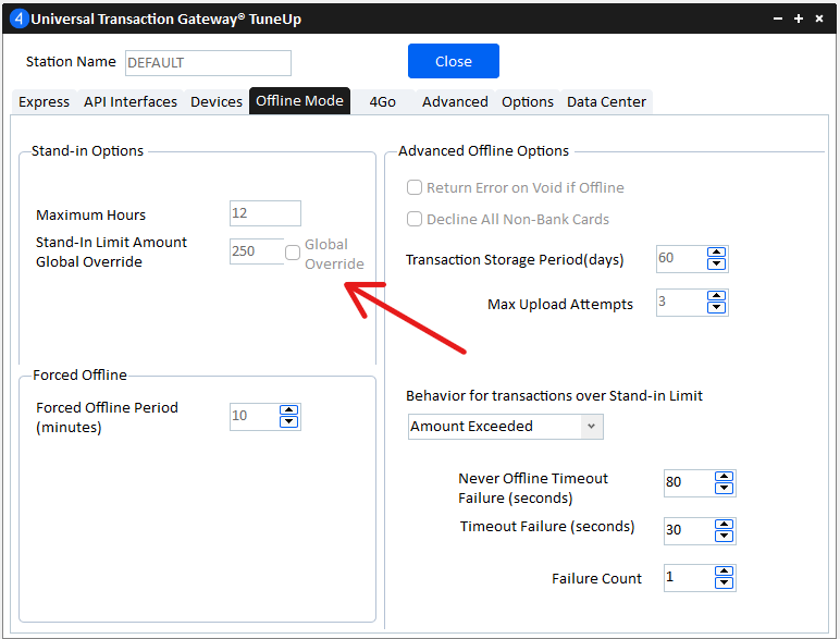 Offline Mode Stand-In Limit Changes for UTG 3260 Versions and Above