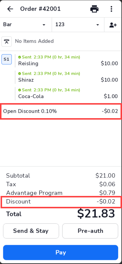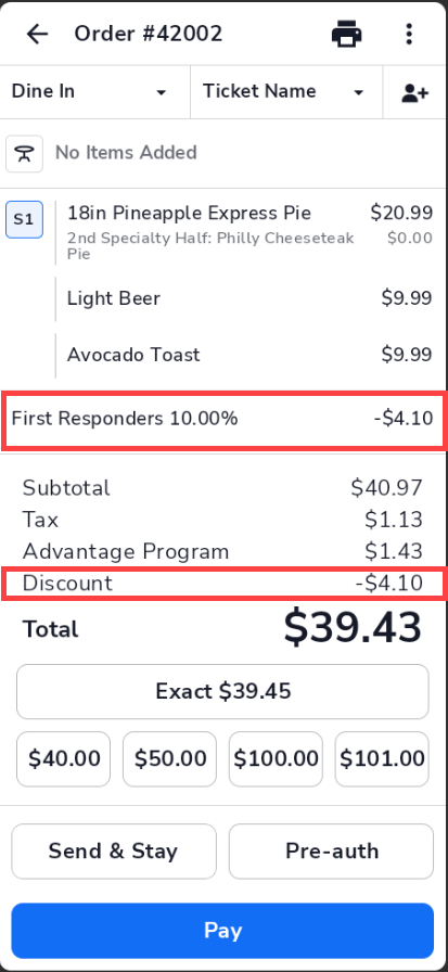 - Tap OK to apply the discount(s) to the ticket.
