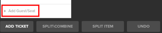 On the Manage Ticket screen, you can add a guest by tapping on the +Add Guest/Seat button at the bottom of the ticket. If there is more than one ticket, tap on the button at the bottom of the ticket to which the guest/seat is to be added. The ticket does not have to be selected to add a guest using this button.