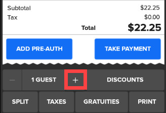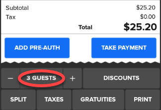 Alternatively, you can press and hold the Guest label and enter a number on the onscreen keypad if you need to add several guests to the ticket at once.