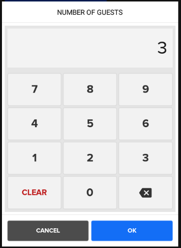 You can also change the number of guests by pressing and holding on the Guest Count itself, entering the correct number on the keypad, and then selecting Ok.