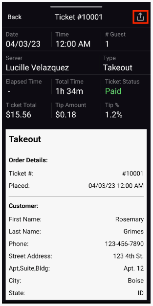 Use your device's options to choose a way to send the receipt, such as Gmail or via text or SMS.