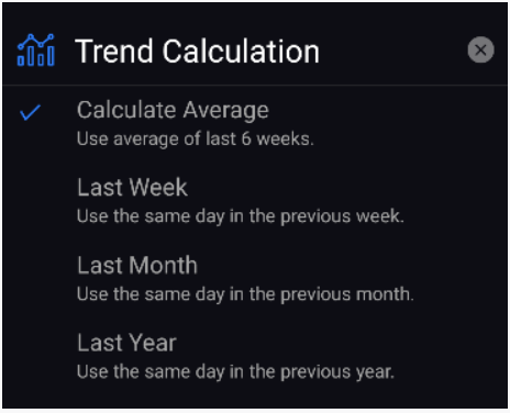 - Select one of the Trend Calculations from the list (Calculate Average, Last Week, Last Month or Last Year).