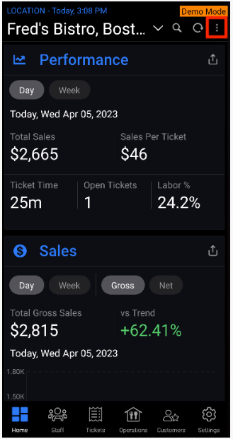Important: The sales numbers in the SkyTab InCharge app do not include open tickets.