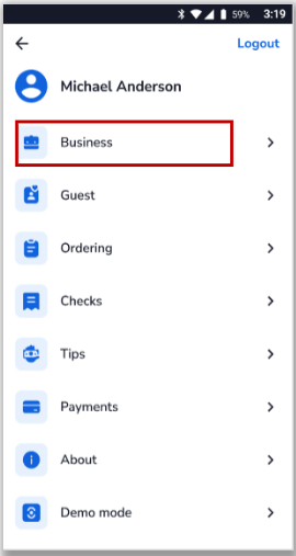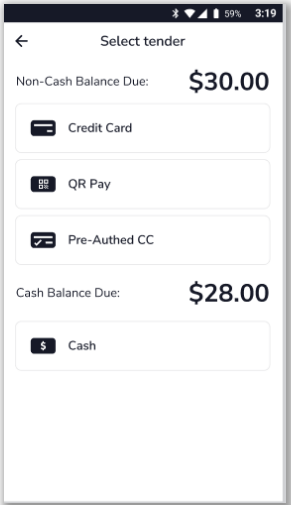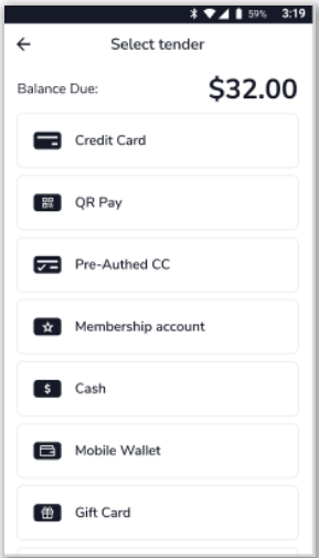 - Navigate to the Tender Selection screen.