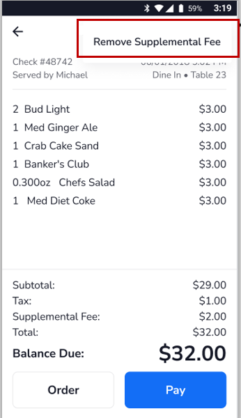 - Select Remove Supplemental Fee to remove the fee.