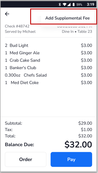When the Supplemental Fee is removed, select Add Supplemental Fee to add the fee back to the check.