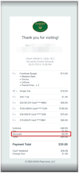 - Printed and emailed receipts as its own line item.