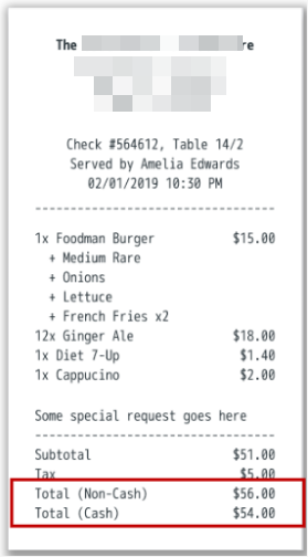 Every order will automatically have two prices, Cash and Non-Cash, displayed: