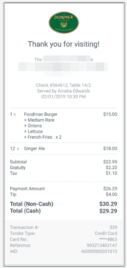 - On a guest check presented for payment