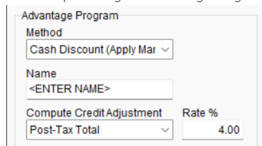 Important:Applying cash price may result in the bank deposit to be lower than Credit Card Total less the Advantage Program fee collected from the Daily Sales Report. Also if your restaurant allows for Credit Tips and you are not using the Credit Tip Fees to recoup the processing fee on the tip that may also result in the bank deposit variance.