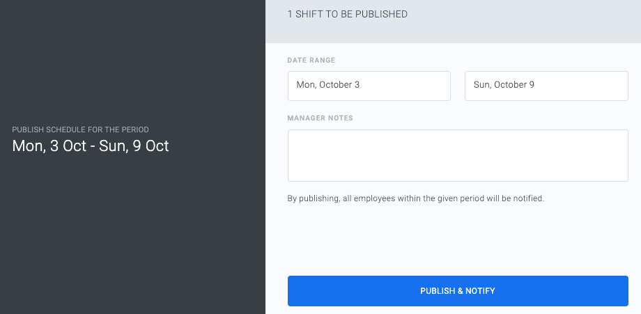 Select Publish & Notify. The shift will be added to the Scheduler and the employee will be notified of the new shift.