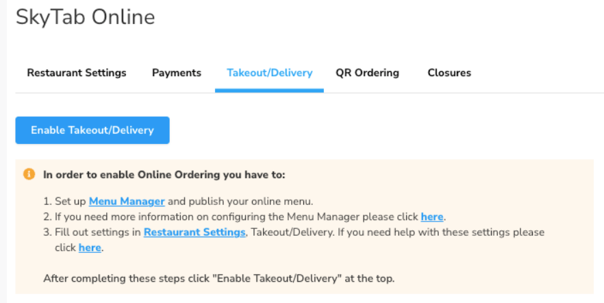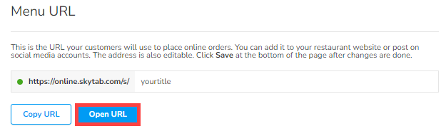- Select the Takeout/Delivery tab near the top of the screen, then scroll down to the Menu URL section.