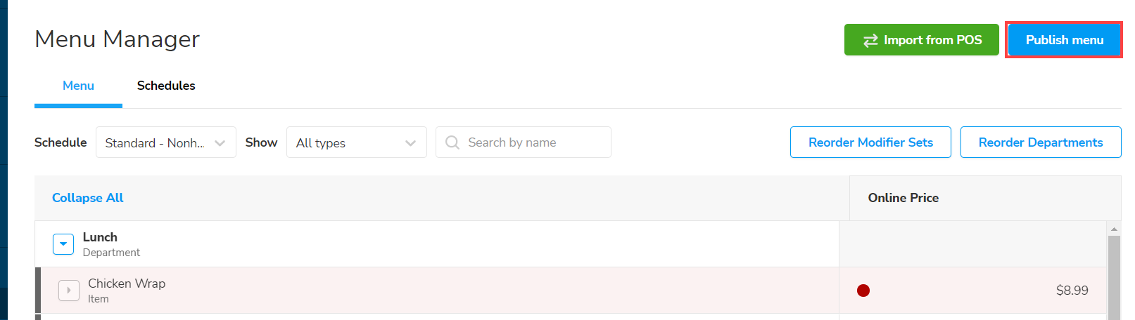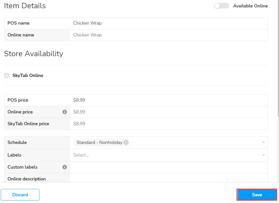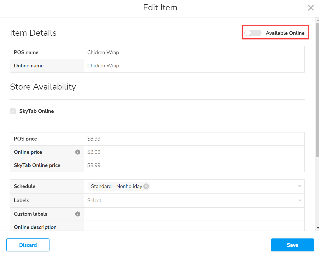 Note: When you remove an item's online availability, it will also be removed/unavailable for your Uber Eats or DoorDash integrations if you have them. -