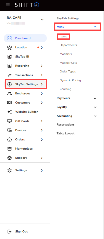 - Log into Lighthouse, then navigate to SkyTab Settings > Menu > Items.