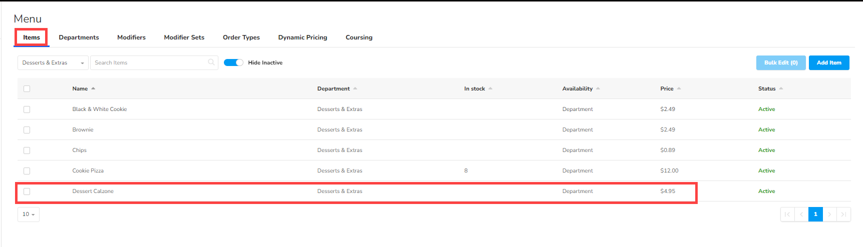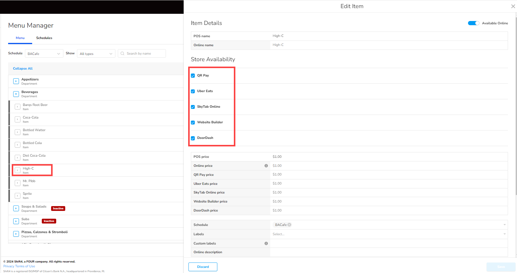 - Select the item to edit, and under Store Availability, uncheck the integration from which you want the item removed.
