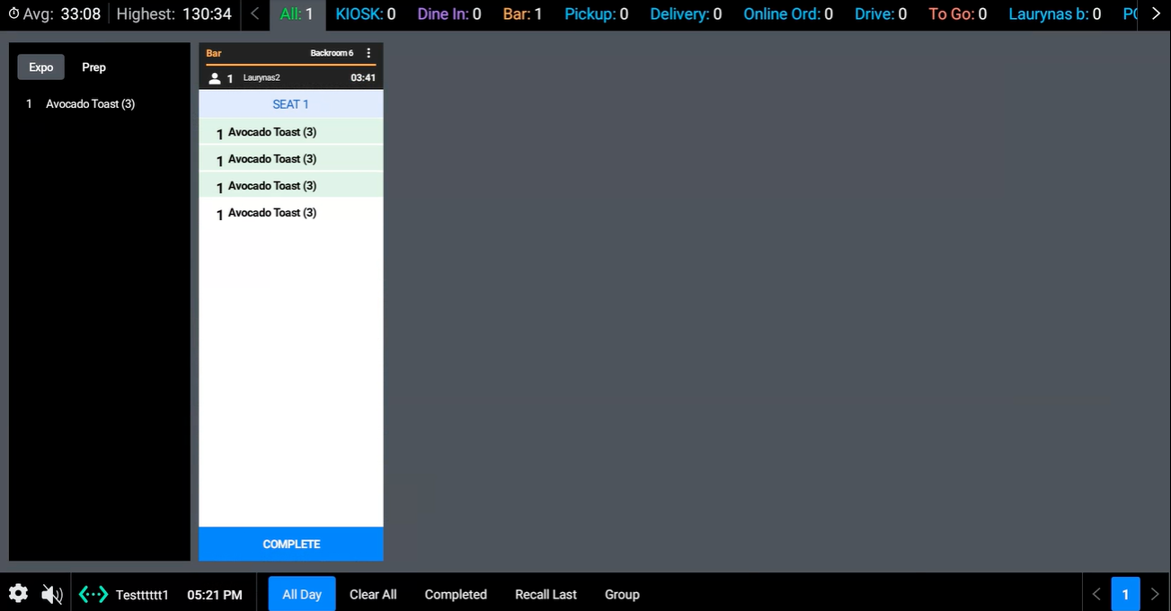 Note: Items with a green background indicate they are selected/fulfilled. - The "Show Complete Button" option displays the Complete button at the bottom of the ticket and should be chosen if a Bump Bar is not being used to complete tickets.