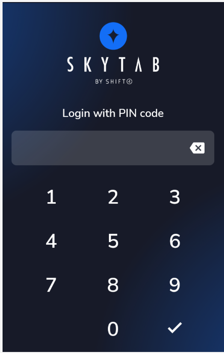 To log into SkyTab Mobile, enter your PIN using the number pad on the screen. When you are finished, tap the checkmark in the lower right.