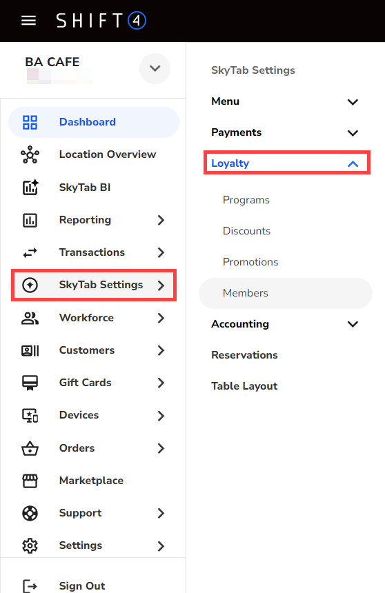 - Log in to LBM and select SkyTab Settings > Loyalty from the left navigation menu.