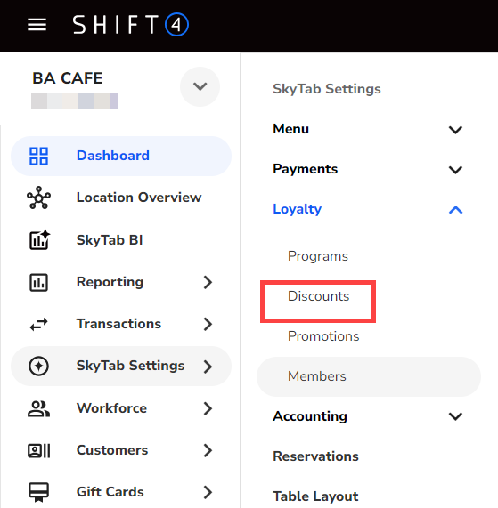 - Navigate to the LBM > SkyTab Settings > Loyalty > Discounts and select the blue Add Loyalty Discount button.