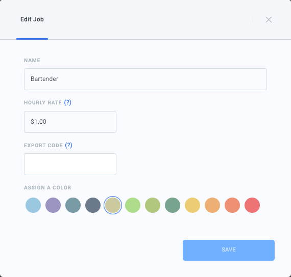 When you initially set up your Workforce company account, all Jobs synchronized from Lighthouse will have a default color of blue. These can be subsequently updated and assigned a color of your choice from a palette of twelve colors. Doing so will facilitate easier recognition of shifts when working with the Schedule.