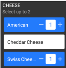 If the modifier says "Select up to" at the top of the column, you can select more than one modifier in the list. In the example shown, you can select up to 2 choices for cheese. If you attempt to select all three, you will receive an error.