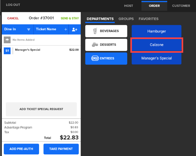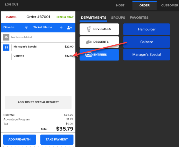 Tap on the item you wish to add to the ticket. Repeat this process for each item you need to add to a ticket.