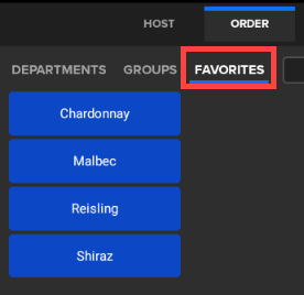 During Order Entry, tap on the Favorites tab to view items that have been marked as favorites.