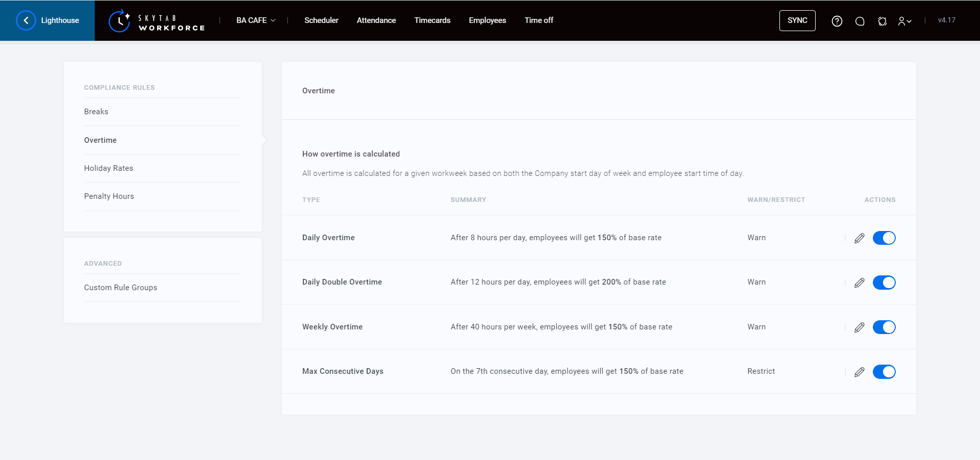 Description: Learn how to set overtime rules in SkyTab Workforce.