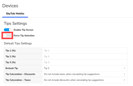Description: Learn how to enable Force Tip Selection on SkyTab Mobile and how payments work when this feature is enabled.