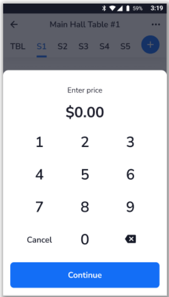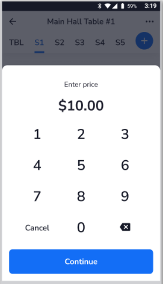 - After tapping on the Open item, you will see a keypad to enter the open item’s price.