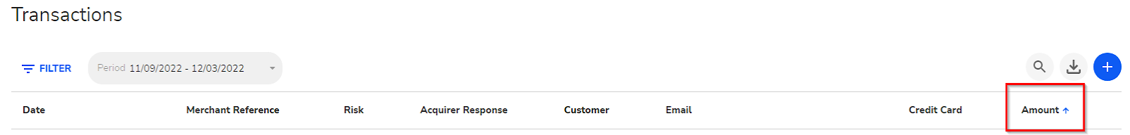For example, by clicking the column header ‘Amount’ the data on the screen will be arranged with the largest amount first.