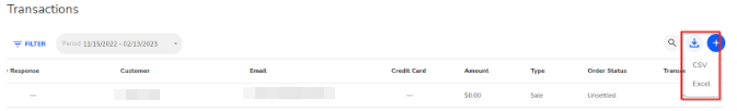 The Transactions Page data can be exported to a local device by clicking on the download icon located in the top right corner of the main Transaction Page screen.