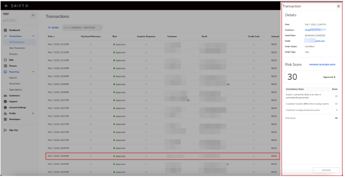 - Consistency Rules: Breakdown to show the individual risk rules triggered and their score