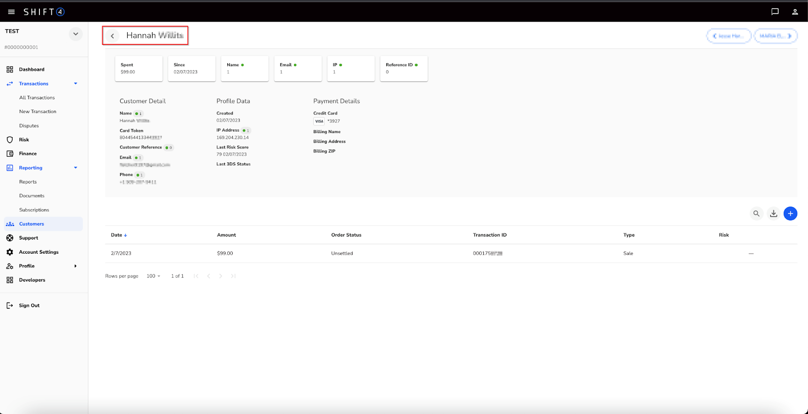 Using the Customer Page, users can find a customer's full transaction history and explore customer profiles. This allows them to create and maintain block/allow lists, create business insights, and drive marketing campaigns.
