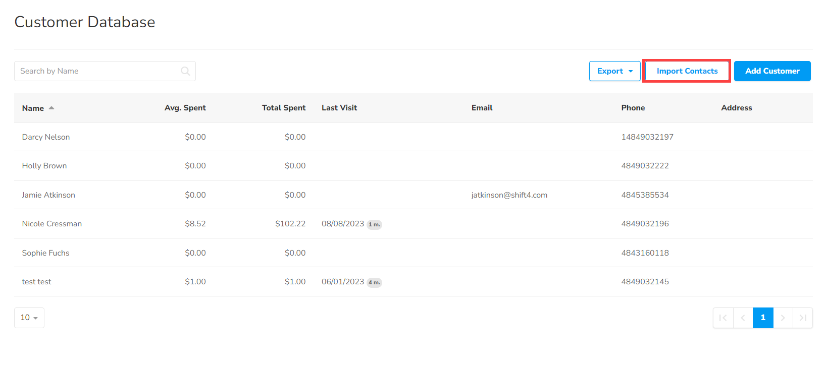 - To import existing customer contact information, utilize the downloadable template located under the Import Contacts button.