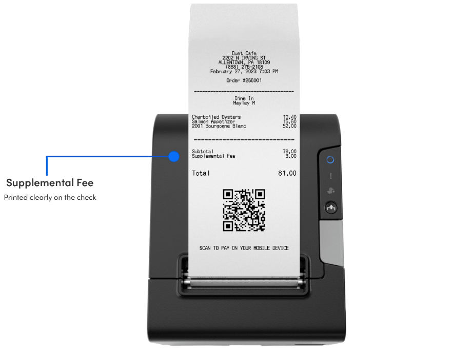 Important: Dual Pricing requires you to clearly display both cash and credit pricing on menus, signage, and other customer-facing materials. - Supplemental Fee Option: You can also implement a Supplemental Fee on transactions, provided the fee is applied equally to cash and non-cash transactions. Supplemental fees are widespread in many industries, including hotels, restaurants, and sporting venues. For example, it is common to see "resort", "service", or "delivery fees", which are intended to offset various operational or inflationary expenses. You can remove a Supplemental Fee at your discretion.