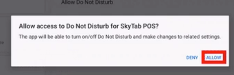 - A popup dialog box will show asking to allow access to Do Not Disturb for SkyTab POS? Select Allow.