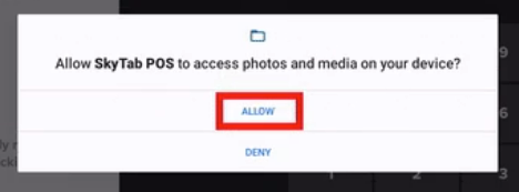 - Allow SkyTab POS to access photos and media on your device?: Select Allow.