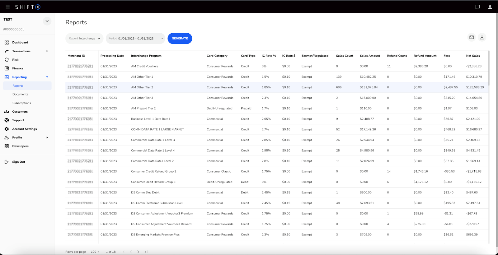The Interchange report details credit card interchange fees paid on a daily and monthly basis, per Merchant ID.