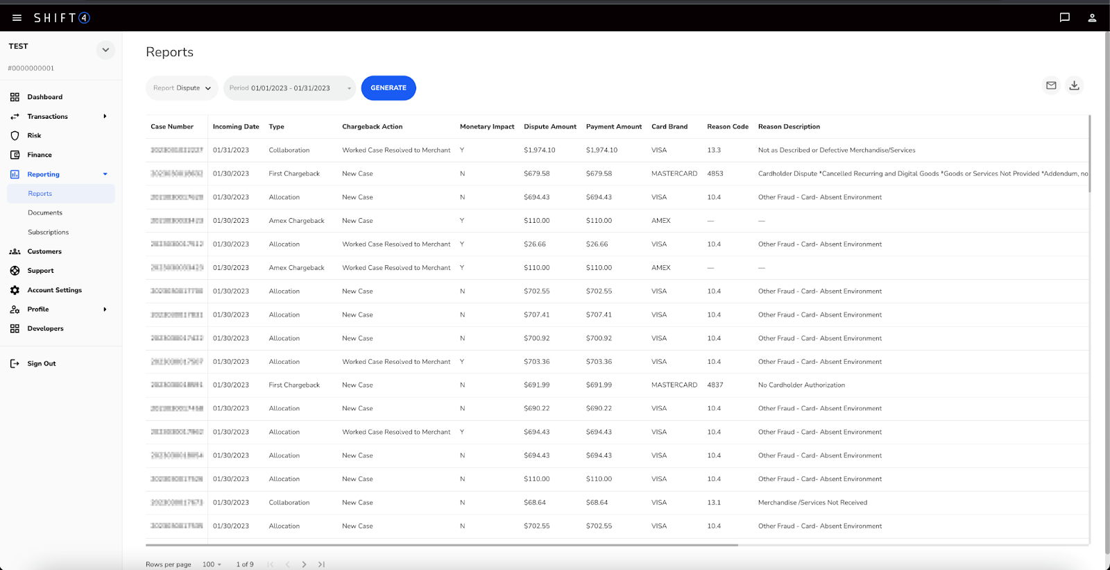 | 9 | Reason Code | varchar | Indicates why the dispute was initiated by the Issuer on behalf of their cardholder and falls into one of four categories, including: fraud, authorization related, processing errors and cardholder disputes |